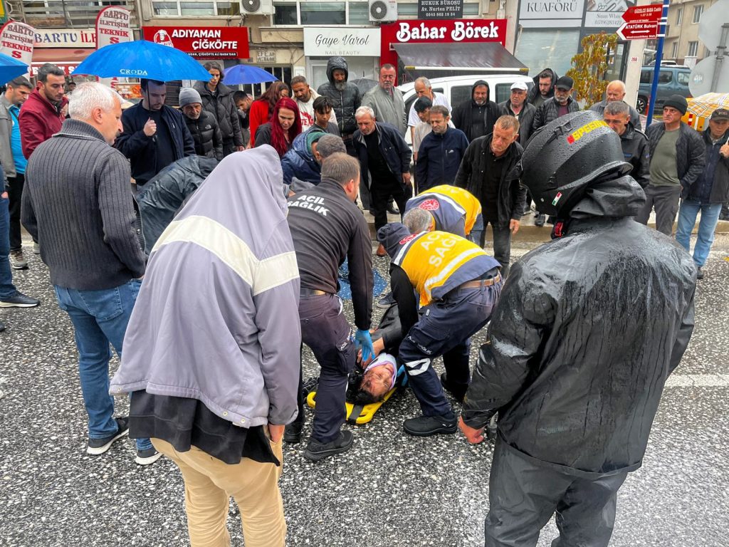Yağışın etkili olduğu sırada meydana gelen kazada, bölgedeki esnaf yaralı kadına yardım için koştu. Ambulansın gelmesini beklerken ıslanmaması için Çemberli’nin üzerine mont örten ve şemsiye tutan esnaf, olay yerine gelen sağlık ekiplerine kadar başında bekledi.