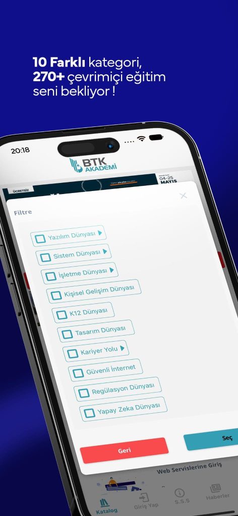 Ulaştırma ve Altyapı Bakanı Abdulkadir Uraloğlu, Bilgi Teknolojileri ve İletişim Kurumu tarafından hizmete sunulan ücretsiz eğitim portalı BTK Akademi’nin mobil uygulamasını kullanıma açtıklarını belirterek mobil uygulama sayesinde, masaüstü cihazlara erişimi olmayanların cep telefonlarından eğitimlere katılabileceklerini bildirdi. Bakan Uraloğlu, mobil uygulamada masaüstü cihazlarda olduğu gibi 10 ana kategori altında 283 konu başlığında eğitim bulunduğunun altını çizdi.
