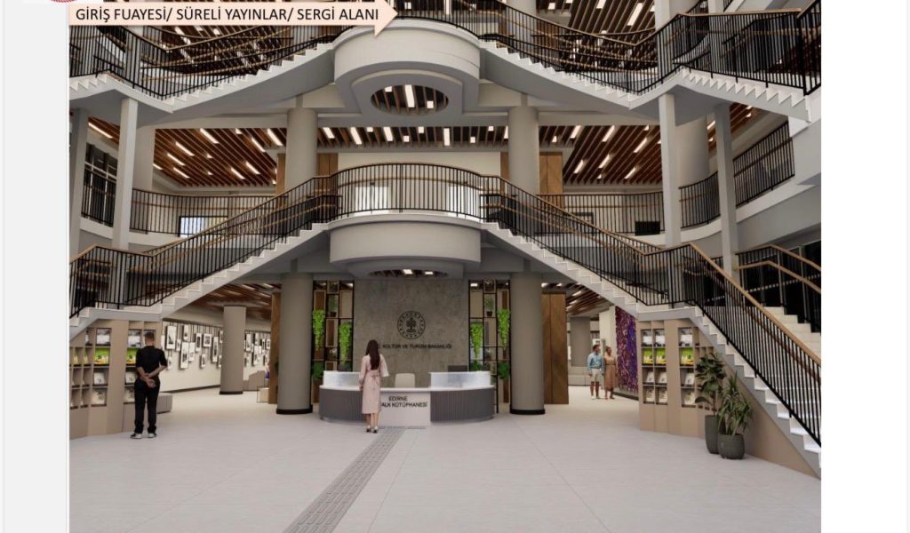 Edirne Valiliği, yapımı büyük oranda tamamlanan İl Halk Kütüphanesi’nin yıl sonuna kadar hizmete açılacağını açıkladı. Türkiye’deki örnek projelerden biri olarak gösterilen kütüphane; 1150 kişilik okuma alanı, 200 binden fazla kitaplık koleksiyon, kent kitaplığı, el yazması eserler, çocuklara özel kütüphane bölümleri ve 7/24 açık çalışma alanlarıyla dikkat çekecek.