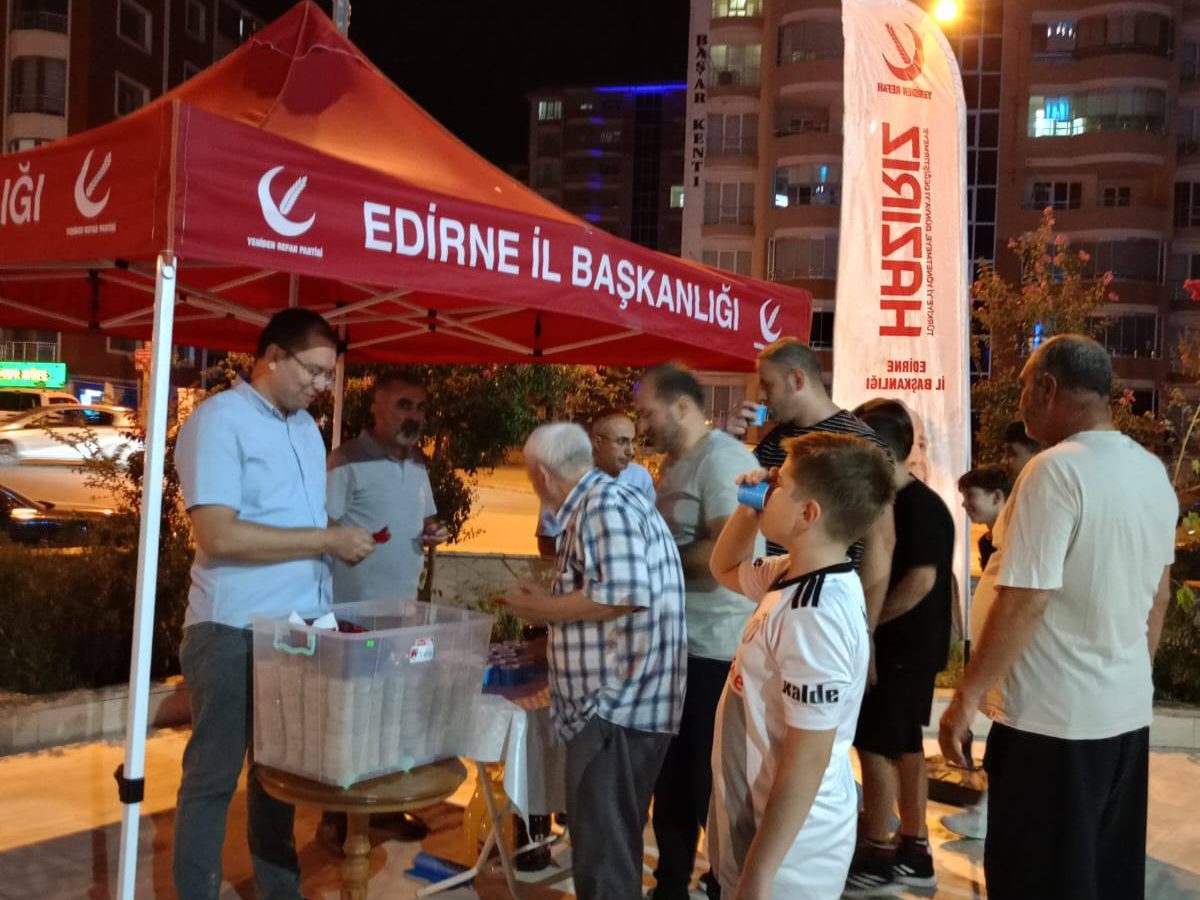Yeniden Refah Partisi (YRP) Edirne İl Başkanlığı, Mevlid Kandili dolayısıyla düzenlediği etkinlikte vatandaşlara helva, şerbet ve su ikramında bulundu.