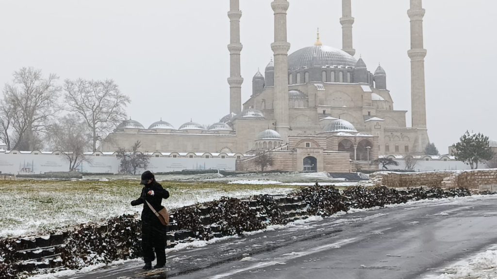 Meteorolojinin kuvvetli kar yağışı uyarısının ardından Edirne’de sabah saatlerinden itibaren etkisini artıran kar, kent genelinde günlük yaşamı olumsuz etkiledi. Yoğun kar yağışı ve yer yer buzlanma nedeniyle özellikle yaya trafiğinin yoğun olduğu cadde ve sokaklarda bazı vatandaşlar yürümekte güçlük çekti.