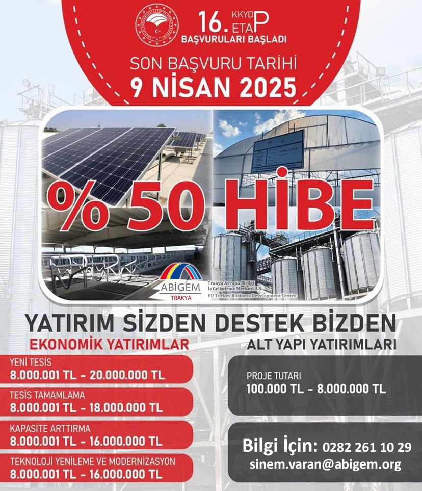 Tarım ve Orman Bakanlığı tarafından, Küçük ve Orta Ölçekli tarımsal işletmelere yönelik Kırsal Kalkınma Destekleri yüzde 50 hibe desteği başvuruları başladı. Başvurular, 9 Nisan 2025 tarihinde son bulacak.