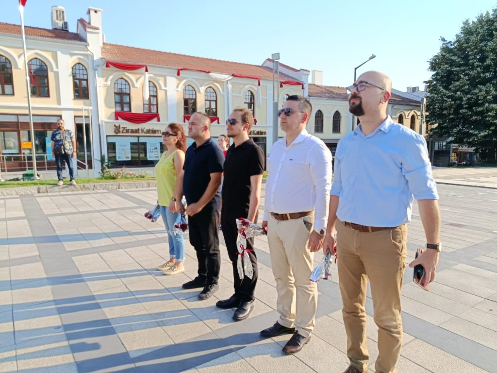 Zafer Partisi Edirne İl Başkanlığı, şehit olan askerlerimiz için dün akşam Atatürk Anıtı'nda anma töreni düzenledi. Parti yönetim kurulu üyelerinin katıldığı törende, anıta karanfil bırakılarak saygı duruşunda bulunulup İstiklal Marşı okundu.