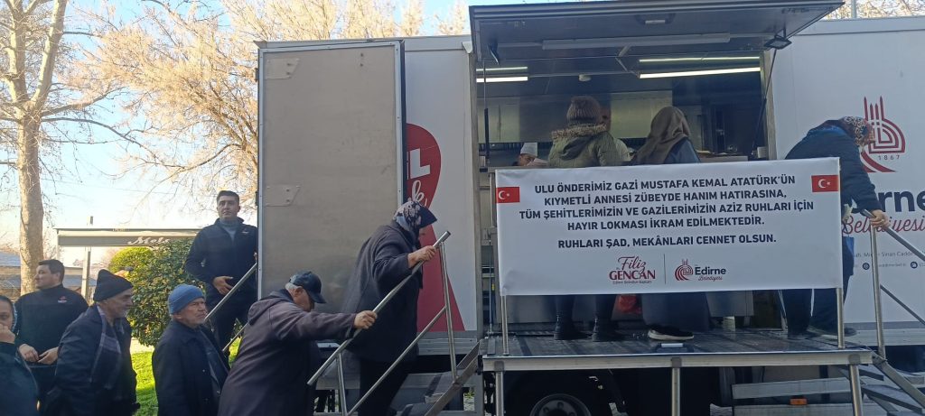 Ulu Önder Gazi Mustafa Kemal Atatürk’ün annesi Zübeyde Hanım, vefatının 103’üncü yıl dönümü sebebiyle ve tüm şehitlerimiz için Edirne Belediyesi ve Şehit aileleri derneği tarafından Eski Camii de mevlit okutulup cami önünde lokma dağıtıldı.