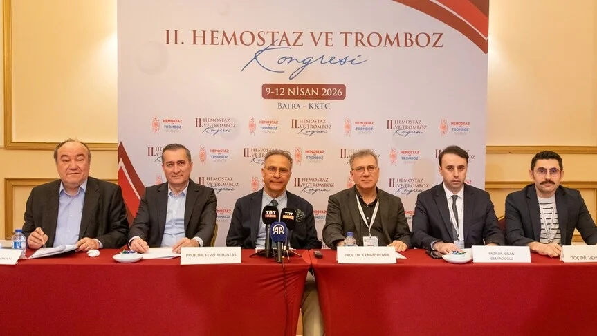 Basın toplantısında konuşan Hemostaz ve Tromboz Derneği Genel Sekreteri Prof. Dr. Sinan Demircioğlu da II. Ulusal Hemostaz ve Tromboz Kongresi'nin "Yaşam ile Ölüm Arasındaki Denge: Hemostaz ve Trombozun Akılcı Yönetimi" temasıyla KKTC'de yapıldığını söyledi.