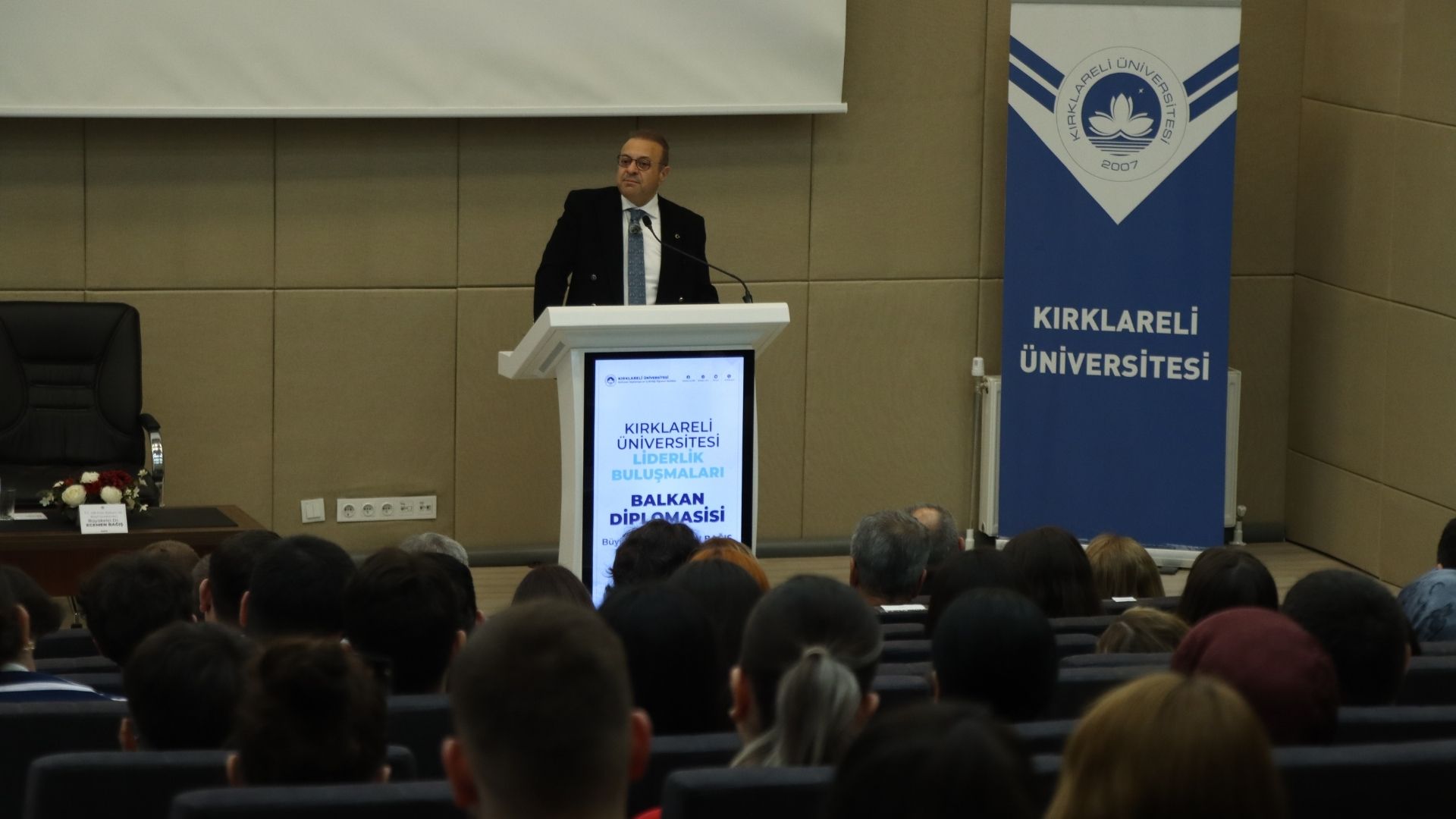 Kayalı Kampüsü Prof. Dr. Mustafa Aykaç Salonu'nda düzenlenen etkinliğe Eski Avrupa Birliği Bakanı Egemen Bağış, Kırklareli Valisi Uğur Turan, Rektör Prof. Dr. Rengin Ak, Belediye Başkanı Derya Bulut, Cumhuriyet Başsavcı vekili İsmet Saçlı ile öğrenciler katıldı.