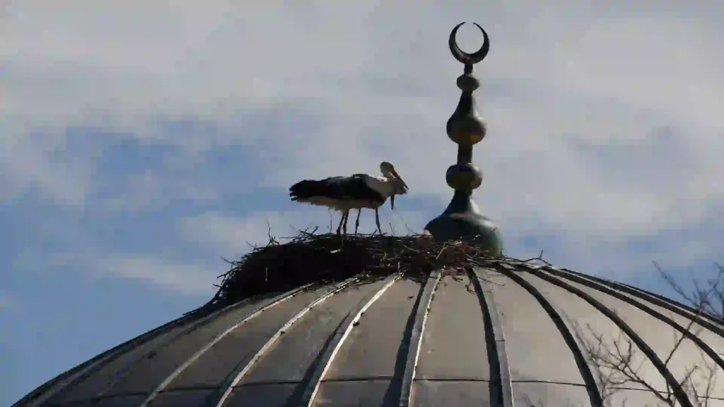 Mahalleye gelen leylekler, caminin kubbesine ağaç dallarından yaptıkları yuvalarına yerleşti. Leyleklerin yuvaya gelişini mahalle sakinleri sevinçle karşıladı.
